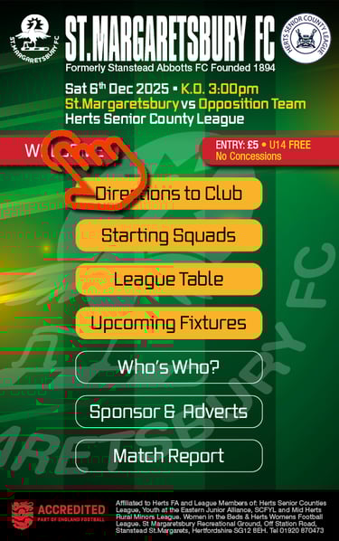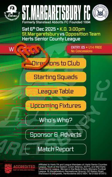 Clubhouse Steward (when open) 01920 870473St Margaretsbury FC Club Secretary:secretary@stmargaretsburyfc